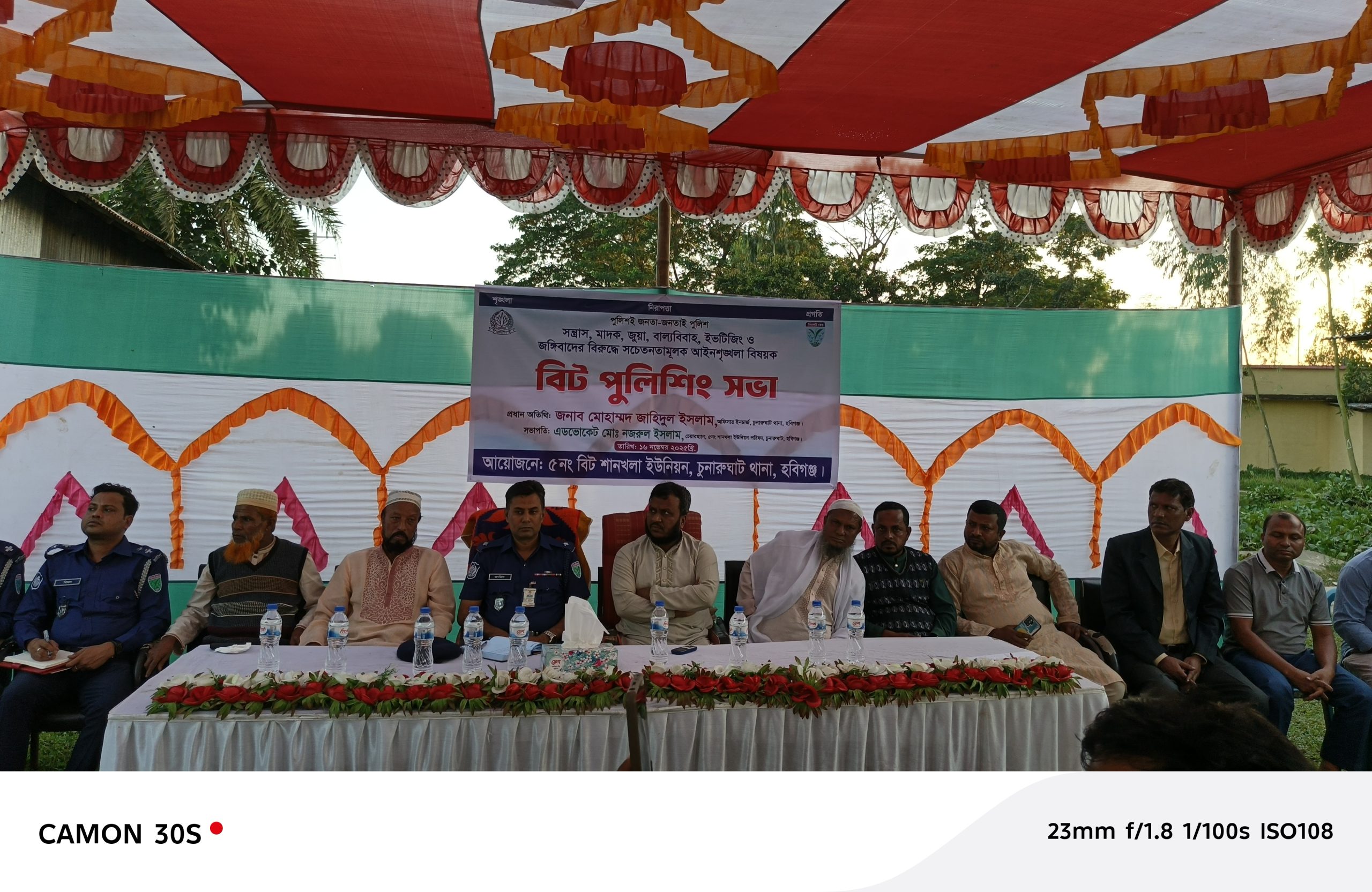 চুনারুঘাট প্রতিনিধি:হবিগঞ্জের চুনারুঘাট উপজেলার ৫নং শানখলা ইউনিয়নে মাদক, চাঁদাবাজি, সন্ত্রাস, সামাজিক অনিয়ম ও বিভিন্ন অপরাধ নির্মূলের লক্ষ্যে বিট পুলিশিং সভা অনুষ্ঠিত হয়েছে।