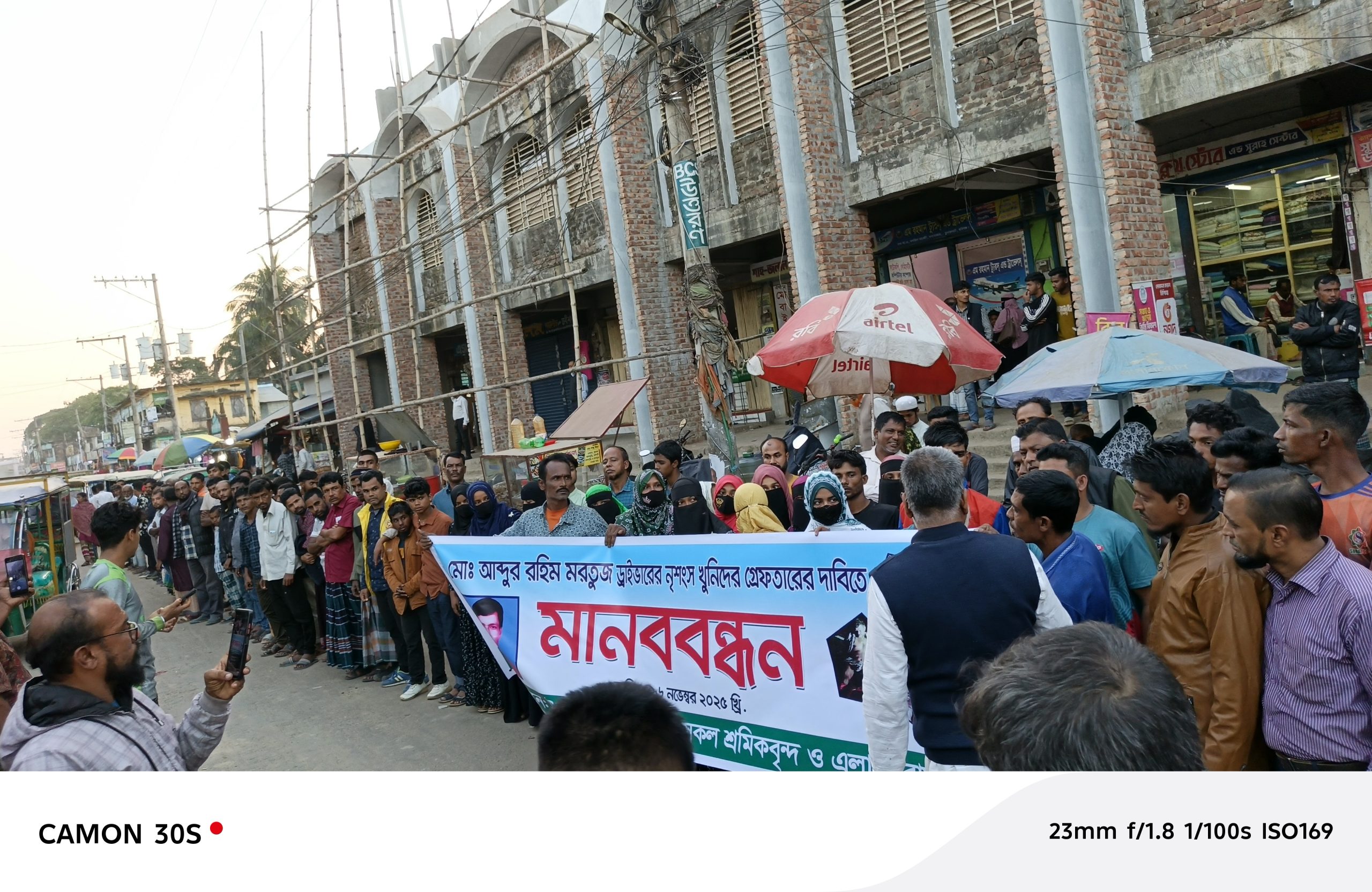 মানববন্ধনের সবচেয়ে হৃদয়বিদারক দৃশ্য দেখা যায় যখন নিহত মরতুজ ড্রাইভারের মেয়ে কান্নাজড়িত কণ্ঠে বলেন, “আমার বাবা ছিলেন আমাদের পরিবারের একমাত্র উপার্জনকারী। তাকে হত্যা করে আমাদের নিঃস্ব করে দেওয়া হয়েছে। আমরা বিচার চাই—বাবার খুনিদের ফাঁসি চাই।”